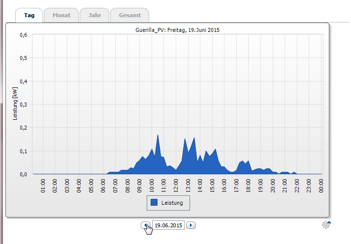 Der Eigenverbrauch wir durch die Anlage zwischen 12 und 16 Uhr auf Null Netzbezug reduziert. Bei dieser Anlage geht die überschüssige Energie in das Speichersystem.