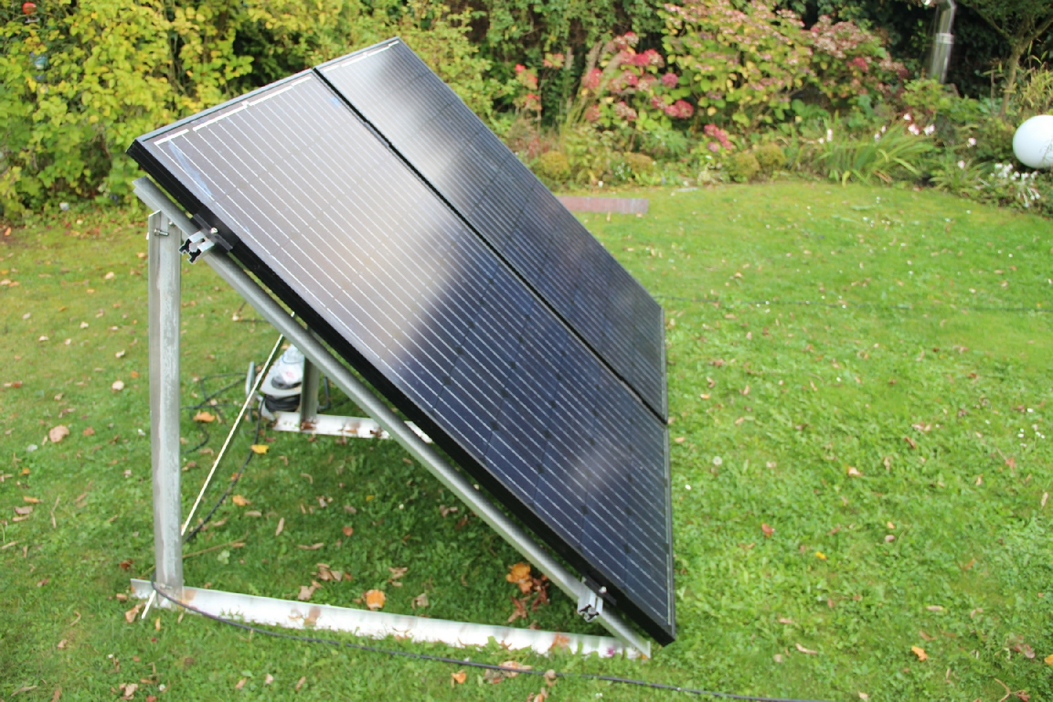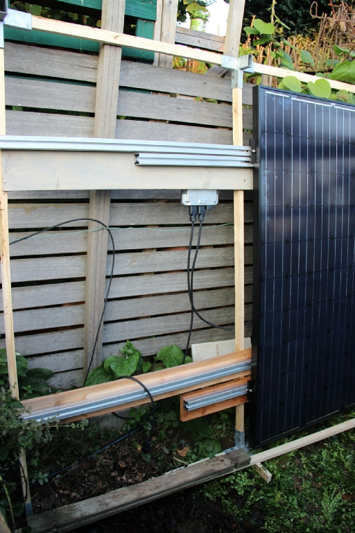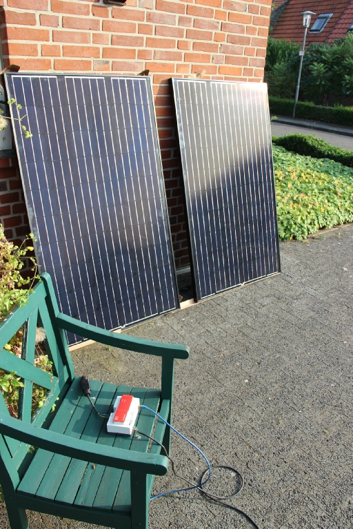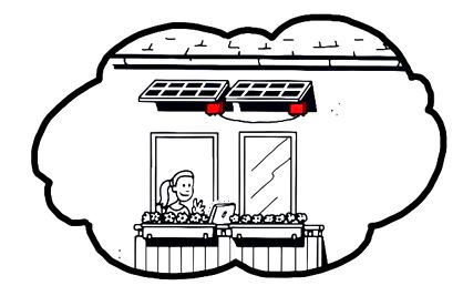 Ein PV-Modul von 255 Watt und ein Wechselrichter gleicher Größe, durch Kabel und Stecker mit dem privaten Hausnetz verbunden, können den (Bezugs)Zähler langsamer laufen lassen, wenn die Sonne scheint. Solche Module finden Platz auf dem Balkon oder an die Wand gelehnt, nach Süden ausgerichtet und gut befestigt.