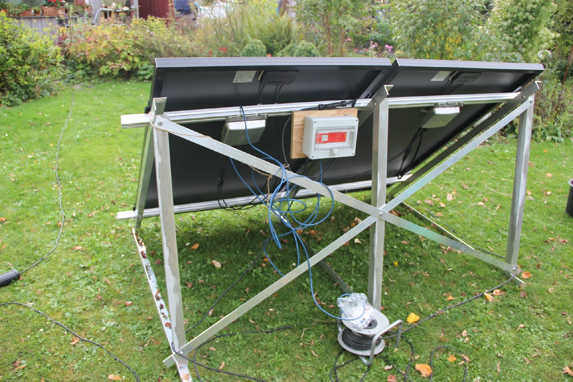 Versuch mit enem Aluminium Untergestell, 45 Grad, drei Dreiecke und 2 Verbände.